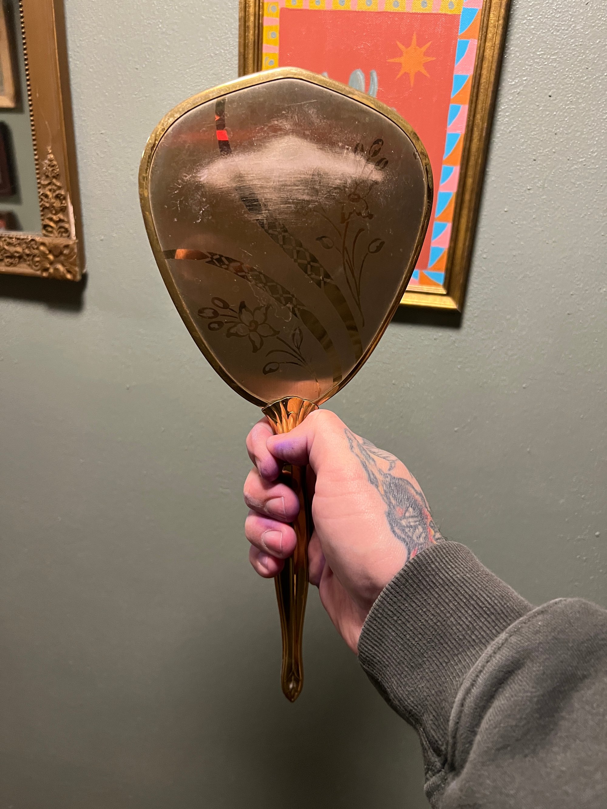 Engraved on an antique hand mirror